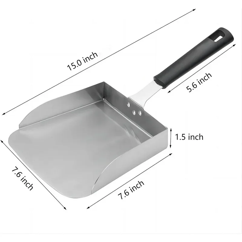 【Large Smash Burger Spatula】 These griddle food mover spatula comes with wide support surface 7.6"L x 7.6"W, square scoop 1.5"H, handle 7.5"L, enough to hold a large smashed burger and easy to move food from your Blackstone grill.